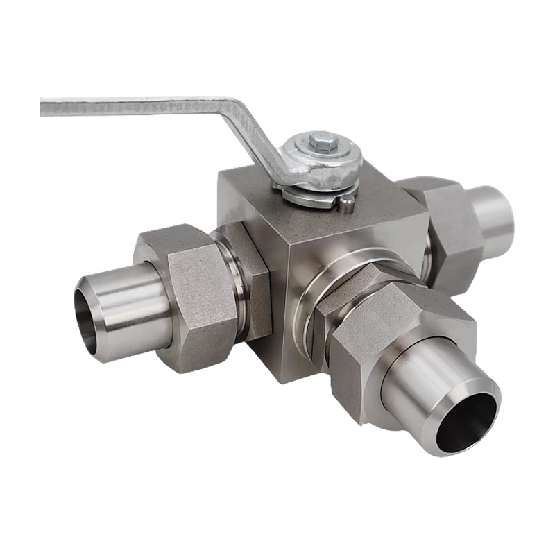 Трехходовой шаровой кран высокого давления из углеродистой стали KHB-3K 304/316L из нержавеющей стали с монтажными отверстиями (Т-образный и L-образный порты), двухпозиционный клапан